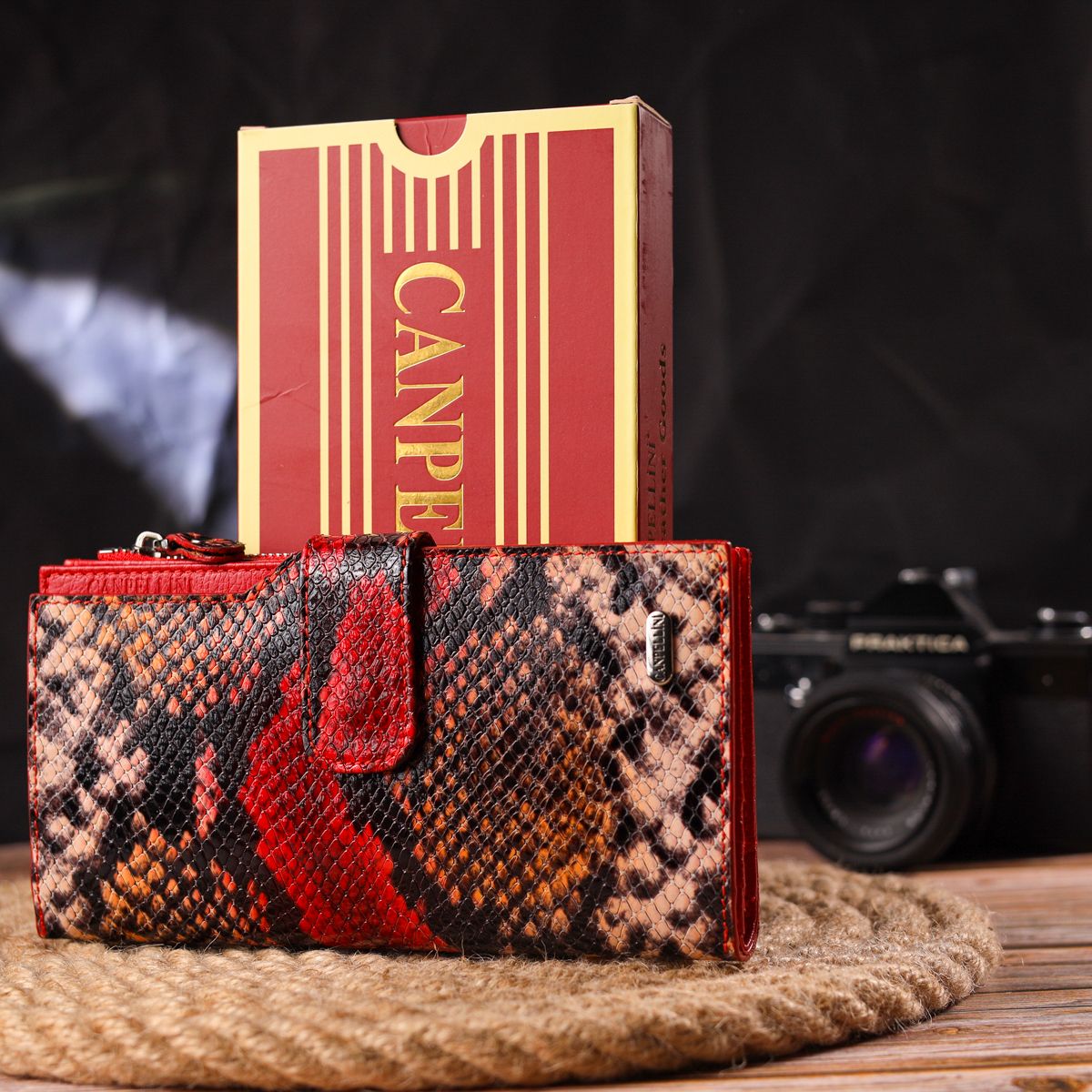 Функціональний жіночий гаманець з натуральної шкіри з тисненням під змію Canpellini 21638 різнокольоровий