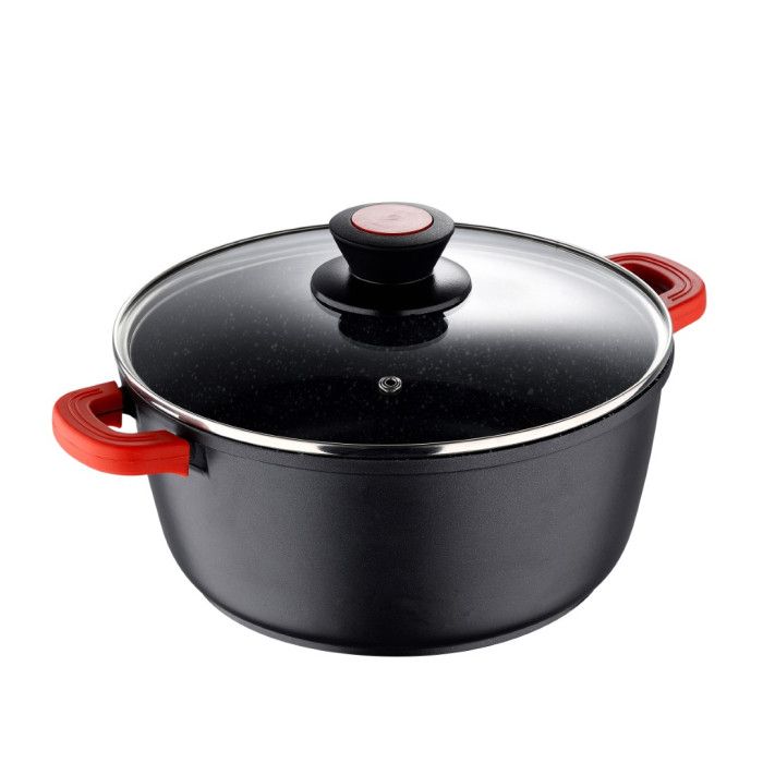 Ця каструля з литого алюмінію забезпечує рівномірний розподіл тепла для приготування різноманітних страв. Вона оснащена кришкою зі скла та нержавіючої сталі, що допомагає зберігати тепло. Бакелітові ручки додають комфорту та безпеки під час використання. Каструля підходить для всіх типів плит, включаючи індукційні.