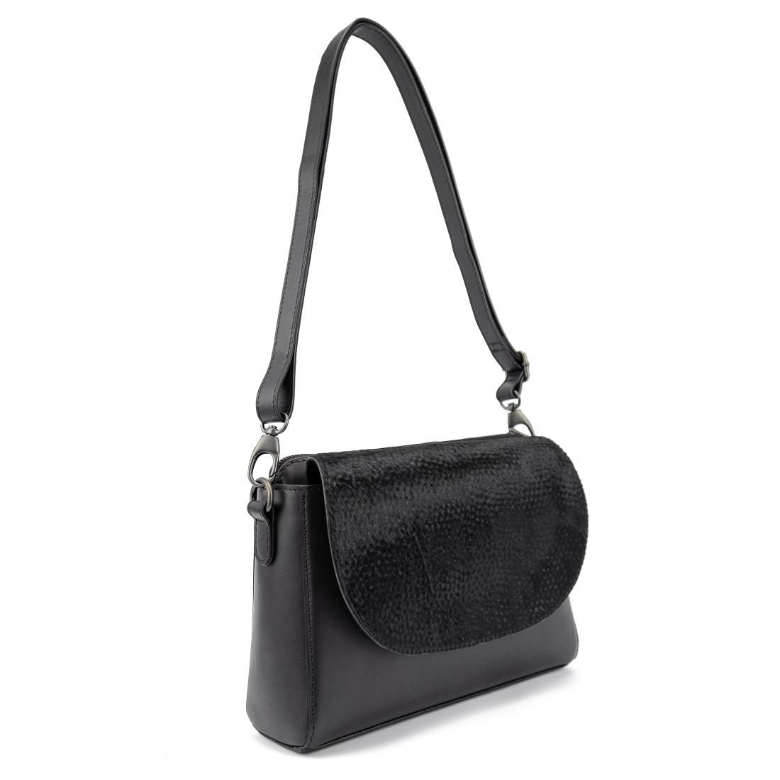 Компактна жіноча шкіряна сумочка з клапаном з хутра Firenze Italy F-IT-9804H чорна
