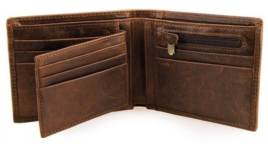 Сучасний, багатофункціональний чоловічий гаманець коричневого кольору. Аксесуар виконаний з натуральної високоякісної шкіри приємної на дотик. На задній зовнішній стороні знаходиться кишенька для пластикових карток. Аксесуар упакований у текстильний чохол білого кольору.