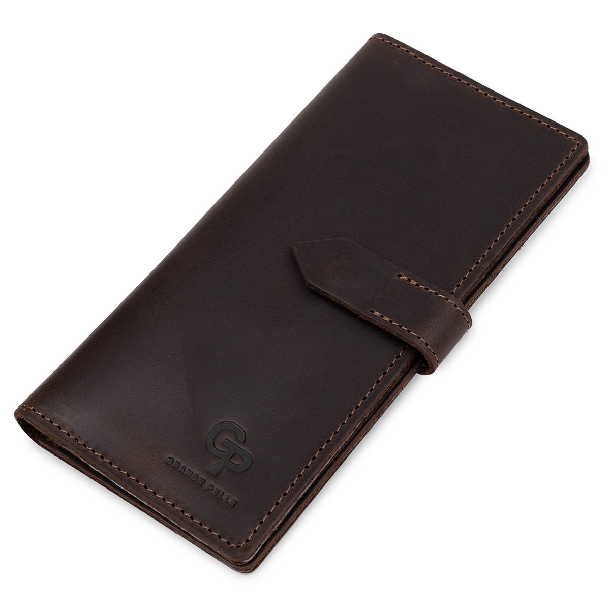 Шкіряне чоловіче матове портмоне Grande Pelle 11515 коричневе