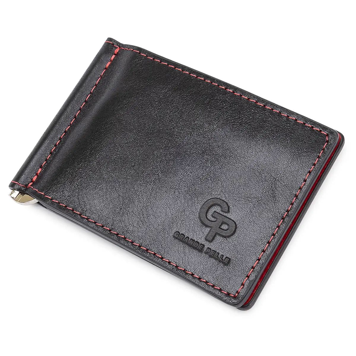 Шкіряний стильний затискач для грошей унісекс Grande Pelle 11541 чорний