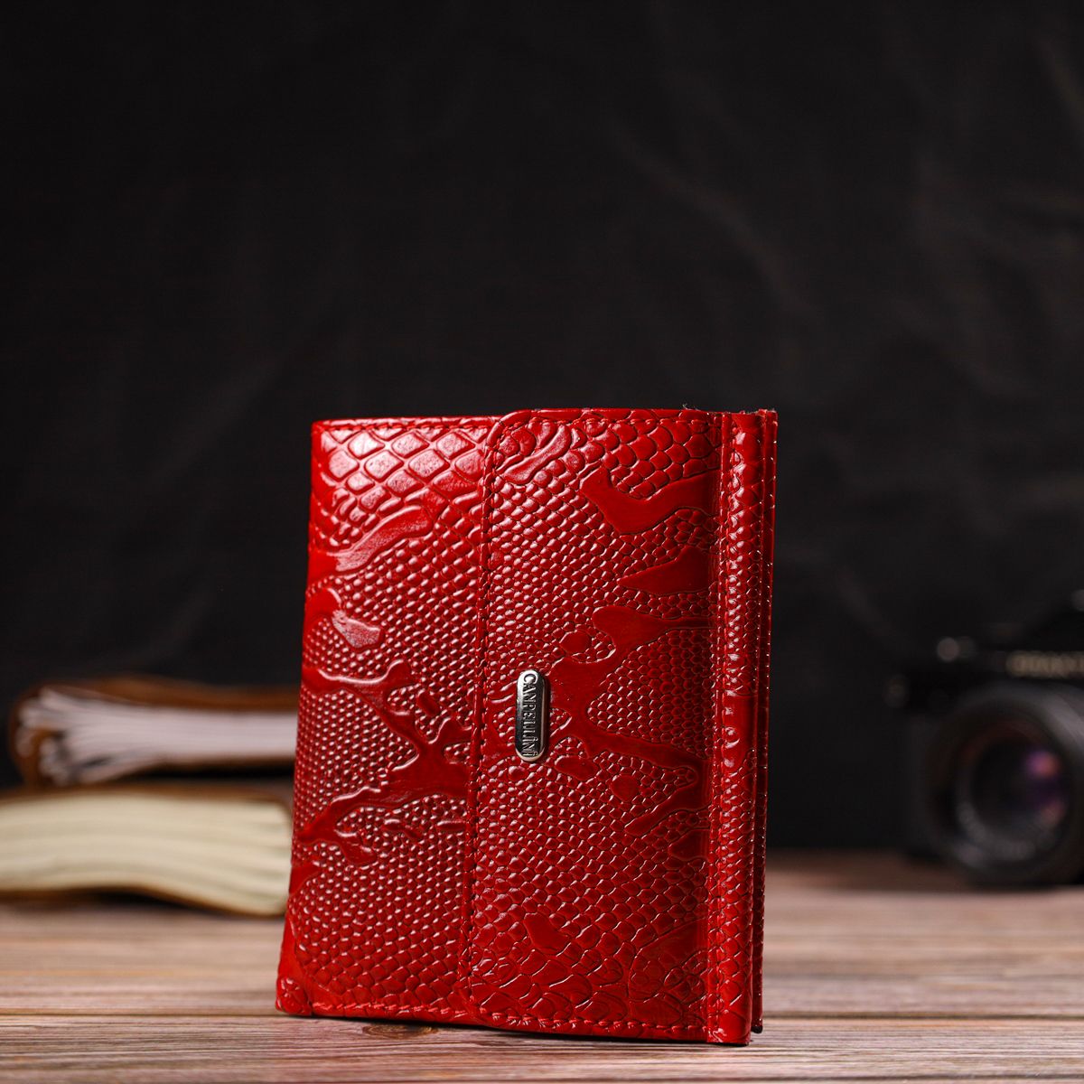 Лакований гаманець для жінок середнього розміру з натуральної шкіри з тисненням під рептилію Canpellini 21816 червоний