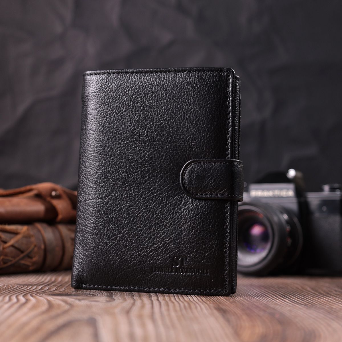 Відкрийте широкі можливості для зберігання своїх грошей з чоловічим портмоне від ST Leather. Виготовлене з високоякісної натуральної шкіри, це чорне вертикальне портмоне з моделі 22733 ідеально підійде для справжнього чоловіка, який цінує якість і стиль. Розмір 10,5х13х2 см гарантує достатньо місця для купюр, карток, а також є вбудована монетниця. Придбайте цей портмоне і додайте розкош до свого стилю!