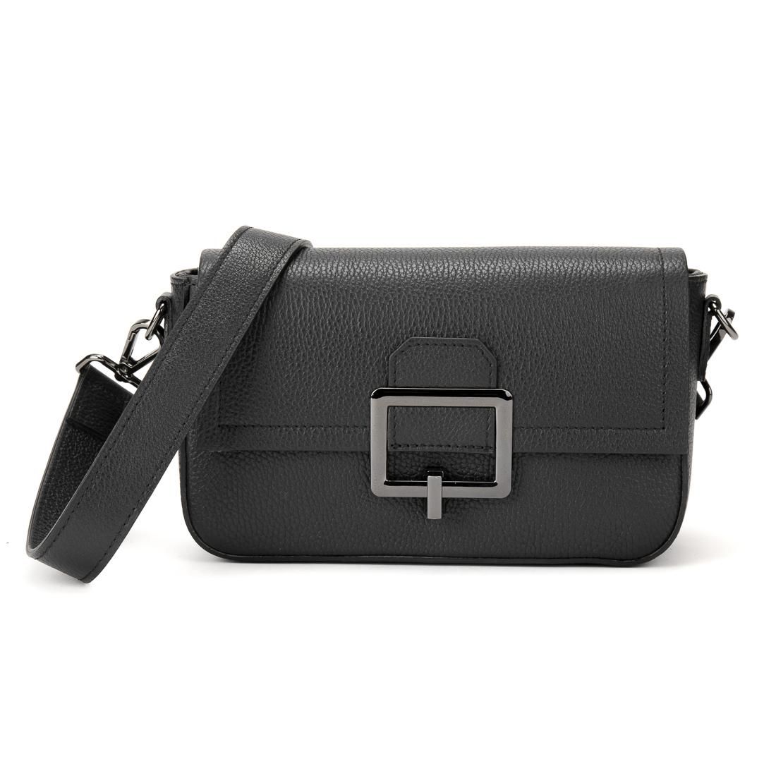 Сумочка Firenze Italy F-IT-1025A чорна з натуральної шкіри із зернистою фактурою. Розміри: 24 x 7 x 14см. Кросбоді невеликих розмірів, каркасна, добре тримає форму, шкіра щільна. Актуальний, стильний дизайн дозволяє легко комбінувати цю модель як із класичними/вечірніми, так і з повсякденними образами. Сумочка має одне основне відділення на блискавці, усередині з кишенькою для дрібних предметів. Тип закриття клапан із квадратною фурнітурою, на застібці. Наплічний ремінець регулюється по довжині, знімного типу, на карабінах. Підкладка: текстиль. Колір: чорний. Колір фурнітури: темне срібло.