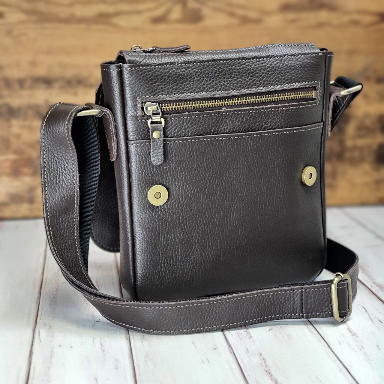 Зручна і практична повсякденна модель чоловічої сумки з ременем через плече. Відмінно поєднується як з діловим костюмом, так і з одягом у стилі casual. Сумка пошита з натуральної високоякісної фактурної шкіри флотар. Цей вид шкіри має і стійке до подряпин покриття, вона еластична і міцна.