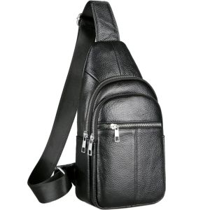 Мужская сумка-слинг кожаная 18х32х7 для прогулок Tiding Bag A25F-5060A черная