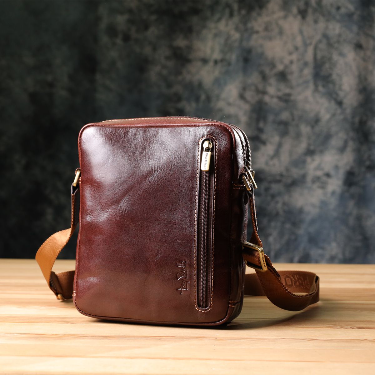 Мужская кожаная сумка от итальянского бренда Tony Perotti – стильный и функциональный аксессуар для повседневного использования. Продуманная организация внутреннего и наружного пространства, брендированный ремень и качественная фурнитура делают сумку удобной и надежной. Тиснение бренда и элегантный дизайн подчеркивают оригинальность и статус владельца, а высокое качество материалов делает изделие идеальным подарком.