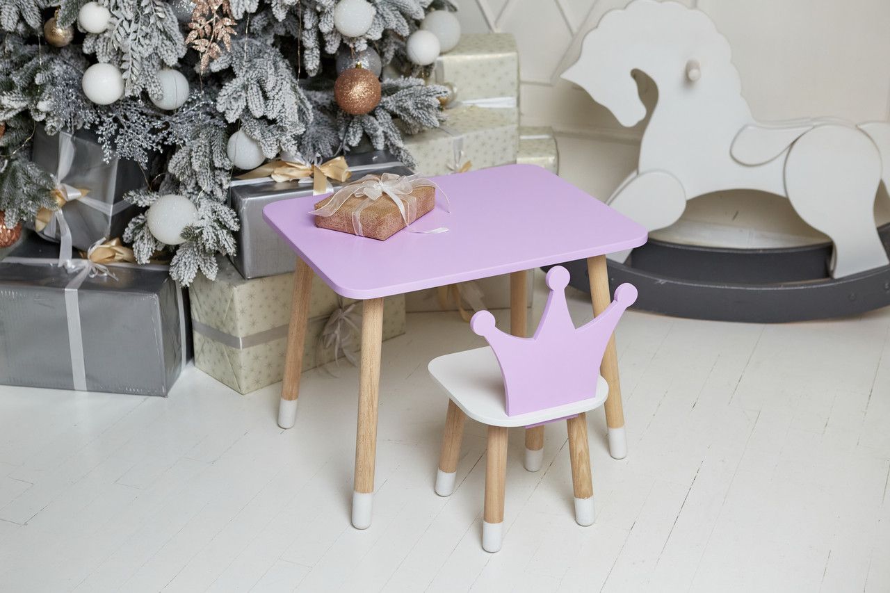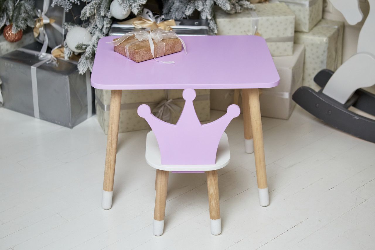 Детский фиолетовый прямоугольный стол и стульчик корона LalaKids