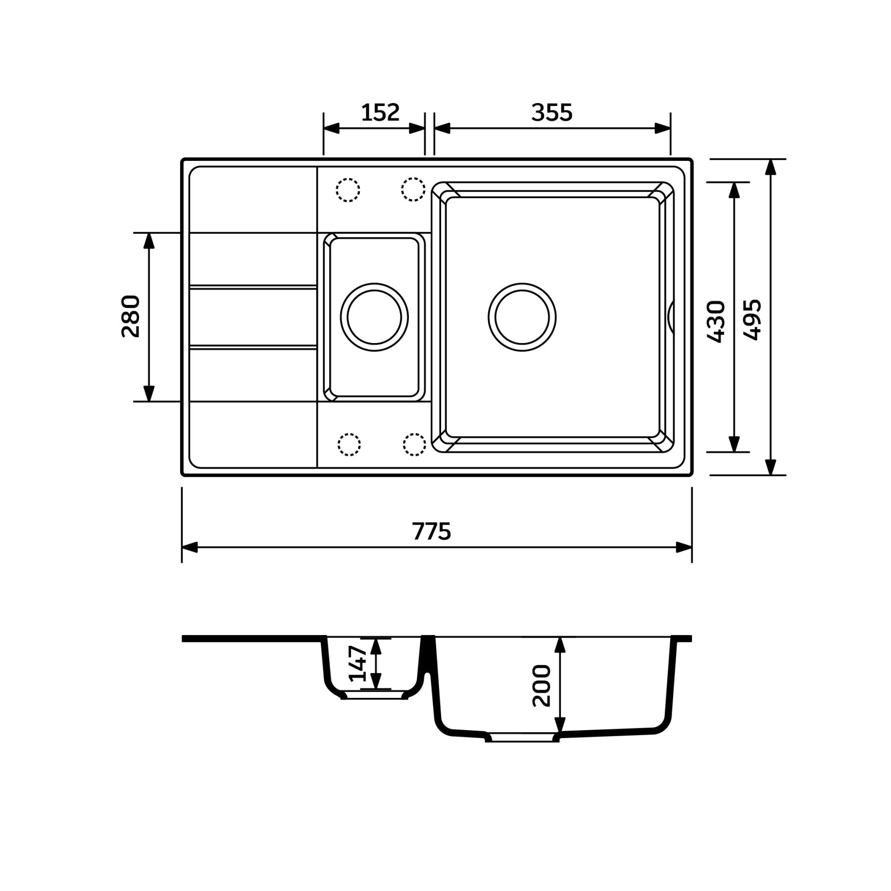 Кухонная мойка Adamant FORT черная, размерами 770x495x200 миллиметров, отличается прочностью гранита и эргономичным крылом для удобной мойки посуды. Современный дизайн подчеркнет стиль кухни, а легкость в очищении обеспечит комфорт каждый день 🖤. Идеальный выбор для тех, кто ценит качество и практичность!