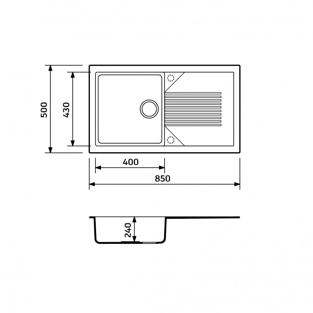 Кухонная мойка ТМ ADAMANT NOVAK графитовый в размере 850x500x240 мм отличается высоким сцеплением с поверхностью. Кухонная мойка ТМ ADAMANT NOVAK графитовая спроектирована по передовой и наиболее перспективной технологии SOLID SURFACE, которая предусматривает изготовление из прочного, высокотехнологичного, экологически чистого материала, состоящего на 80% кварцитов различных фракций и 20% полиэфирных смол. Кварц (SiO 2) – минерал, смесь кремния и кислорода, твердый, прочный долговечный материал, уступающий этим качествам только алмазам и топазам. Каменная поверхность кухонной мойки обладает значительным рядом преимуществ: термостойкая выдерживает высокие температуры до 280°С; устойчива к механическим повреждениям, ударам и царапинам столовыми принадлежностями; структура поверхности однородная непористая, препятствующая проникновению различных красителей и бактерий, позволяющая легко поддерживать мойку в чистоте; материал безопасен и экологичен, протестирован на контакт с пищевыми продуктами; не изменяет цвет и структуру под действием ультрафиолета, большинства кислот, щелочей и других активных химических реагентов. Все составляющие и материалы из которых производятся кухонная мойка ТМ ADAMANT NOVAK графитовый, импортируются из Европы и имеют все сертификаты соответствия экологическим нормам. Профессионально подобранная кухонная мойка ТМ ADAMANT NOVAK графитовый всегда будет выглядеть привлекательно, сочетаясь с интерьером на вашей кухне. Гарантия на продукцию – 5 лет.