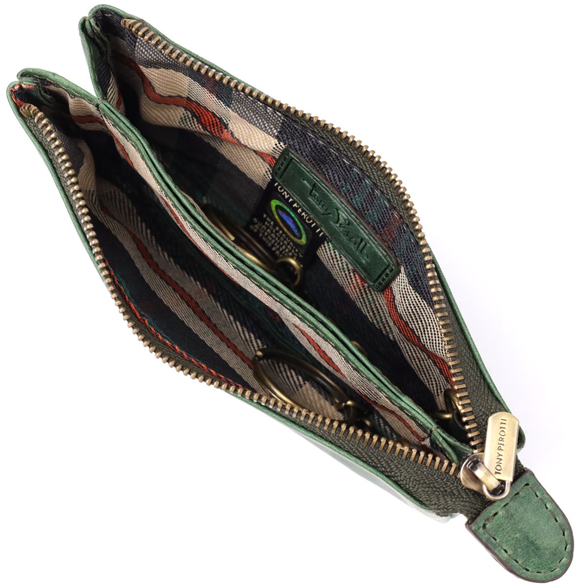 Вместительная ключница на два отделения из матовой натуральной кожи Tony Perotti 20835_1 (3350 deep green) зеленая