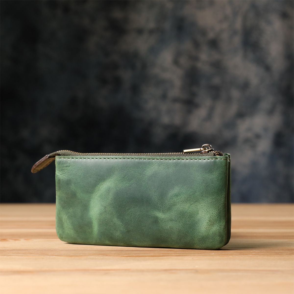 Ключница из натуральной старинной кожи в зеленом цвете. Закрывается на молнию – удобно и надежно. Оснащена тремя отделениями и двумя кольцами для ключей. Дополнена брендированной фурнитурой высокого качества. Такая ключница совмещает функциональность и элегантность. Подойдет для повседневного использования и станет достойным аксессуаром или подарком.