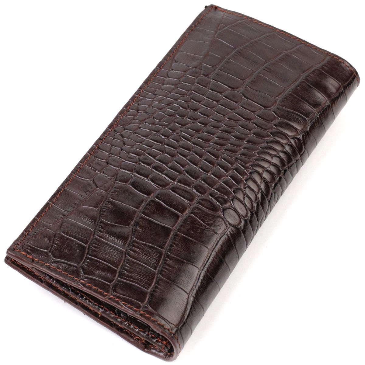Практичный мужской вертикальный кошелек из натуральной кожи с тиснением под крокодила Canpellini 21907 коричневый