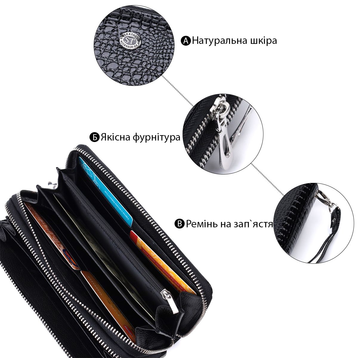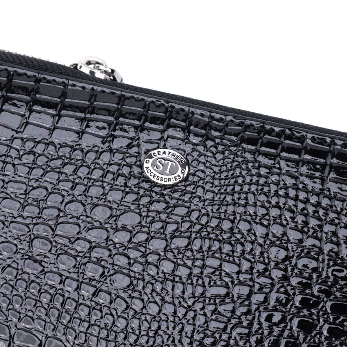 Стильный фактурный клатч на два отделения из лакированной натуральной кожи ST Leather 22693 черный
