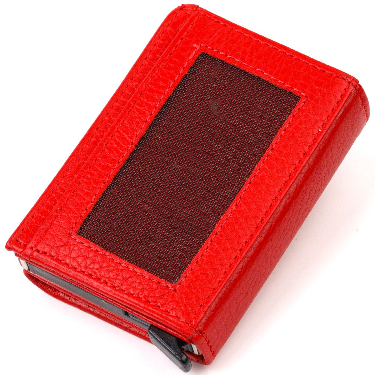 Яркий картхолдер из натуральной кожи, для настоящих деловых женщин, предназначен для хранения банковских и дисконтных карт и небольшого количества наличных денег. Имеет лаконичный дизайн, отлично ложится в руку, помещается в карман, а также в любую сумку. Кожа мягкая, приятная на ощупь. Механизм работает надежно и удобен в использовании; карточки хорошо закреплены в аксессуаре. Отличная идея для подарка близкому человеку.