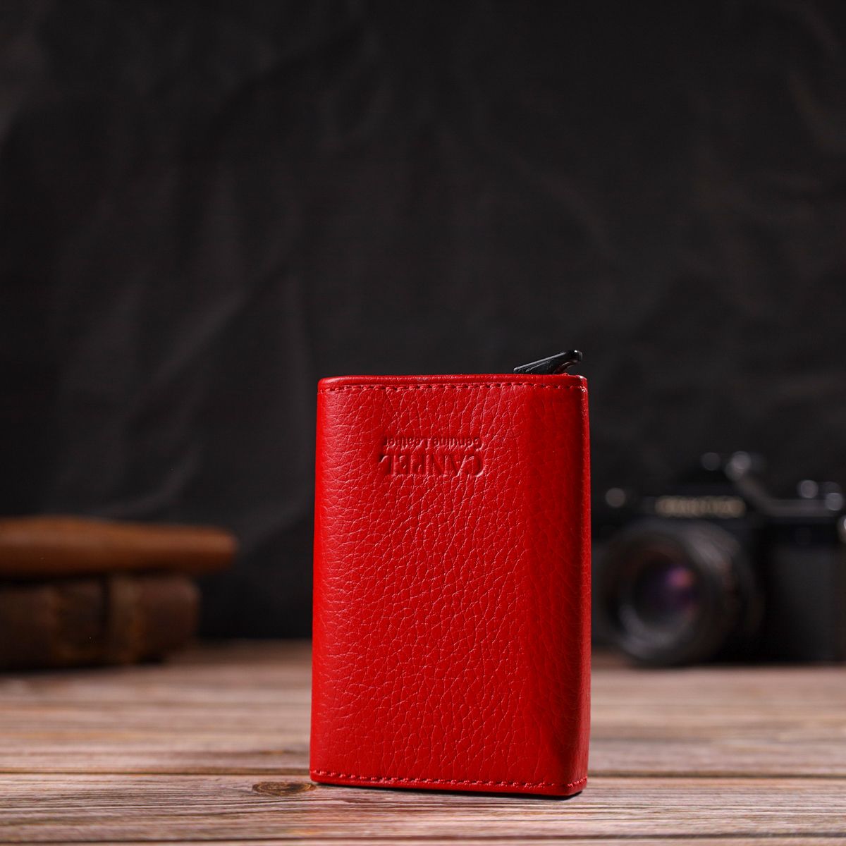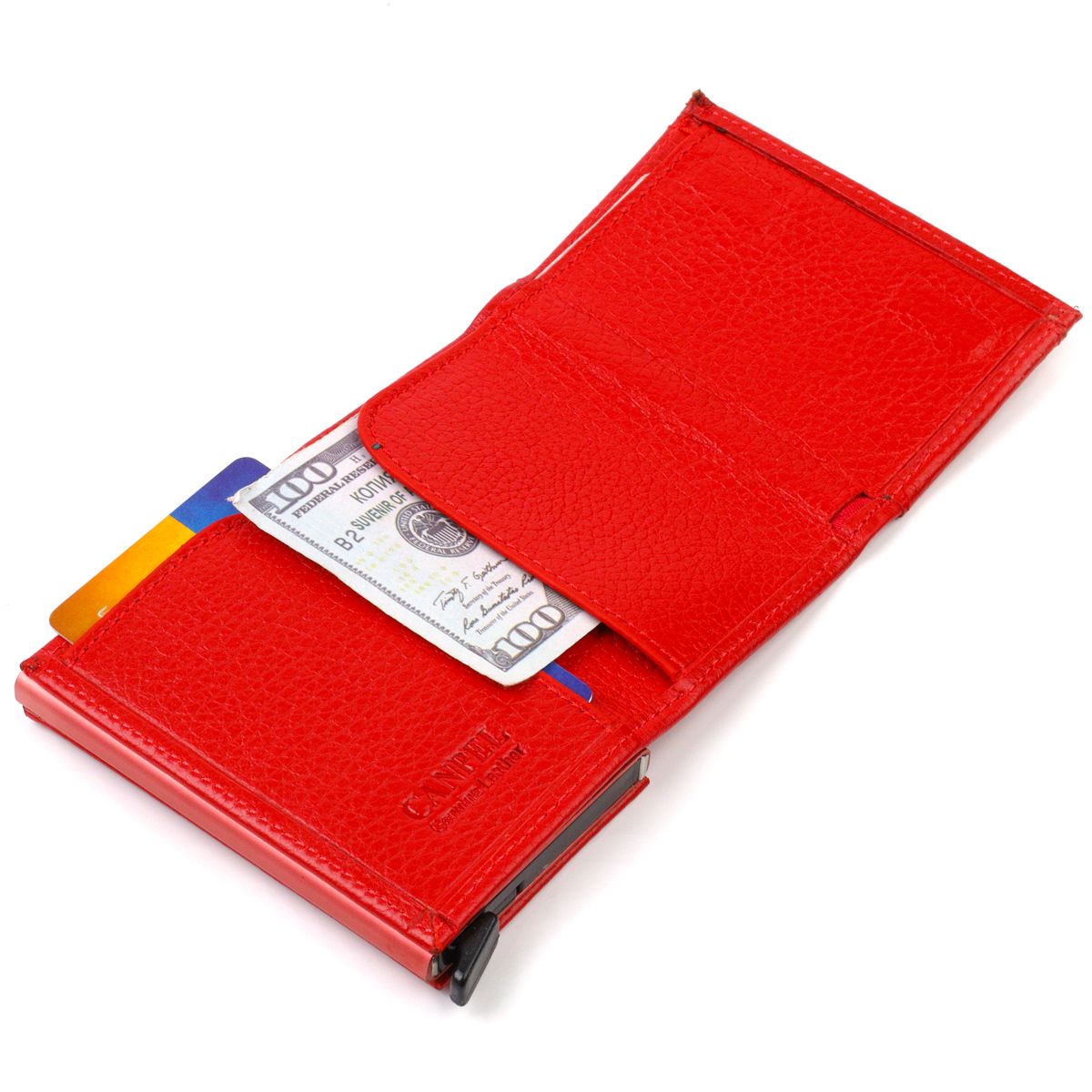 Женский картхолдер в три сборки с автоматическим механизмом из натуральной кожи флотарий Canpellini 21933 красный