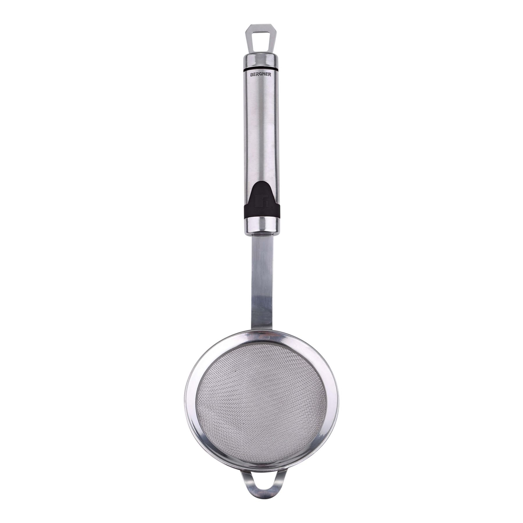 Сито Bergner Gizmo (BG-3269) кухонний аксесур, виготовлений з нержавіючої сталі. Ручка з чорною вставкою та з петелькою для підвішування. Матеріал не вбирає запахи, не змінює смаку продуктів, екологічно чистий, не містить шкідливих та токсичних речовин. З його допомогою можна просіювати борошно, посипати десерти цукровою пудрою або какао, а також використовувати як шумовку.