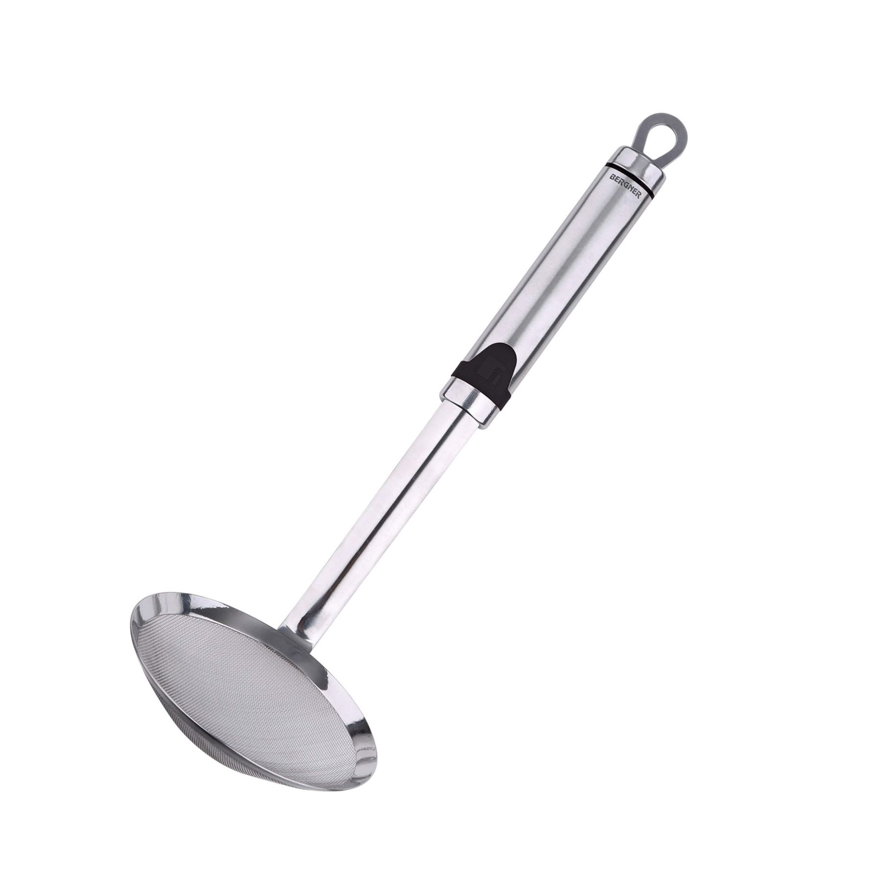 Сито Bergner Gizmo (BG-3271)кухонний аксесур, виготовлений з нержавіючої сталі. Ручка з чорною вставкою та з петелькою для підвішування. Матеріал не вбирає запахи, не змінює смаку продуктів, екологічно чистий, не містить шкідливих та токсичних речовин. З його допомогою можна просіювати борошно, посипати десерти цукровою пудрою або какао.