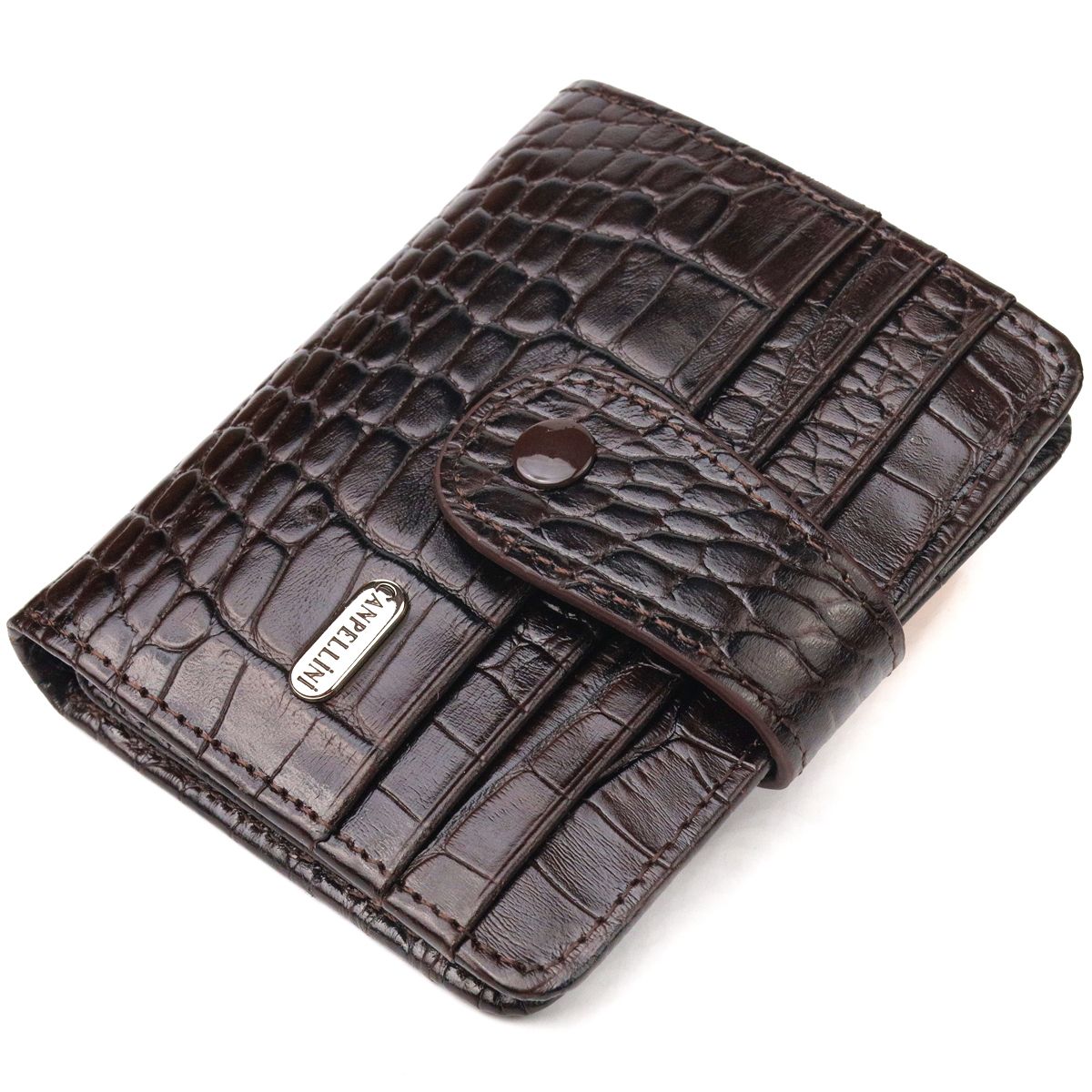 Цікавий гаманець для чоловіків з натуральної шкіри з тисненням під крокодила Canpellini 21689 коричневий