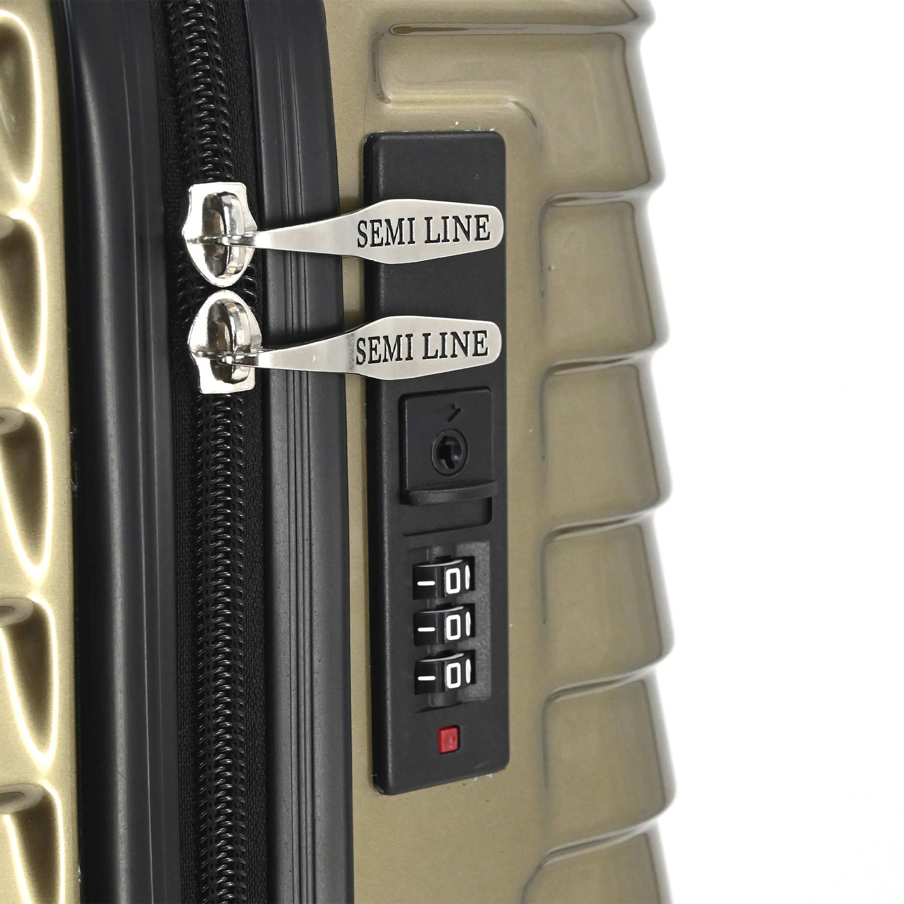 Валізи Semi Line T5763 - яскраві і привабливі, адже їх колір золотий металік мимоволі привертає увагу і дозволяє кардинально вирізнятись серед інших буденних валіз, завдяки чому ви ніколи не сплутаєте її з іншими валізами в багажному відділенні чи на багажній стрічці в аеропорту.