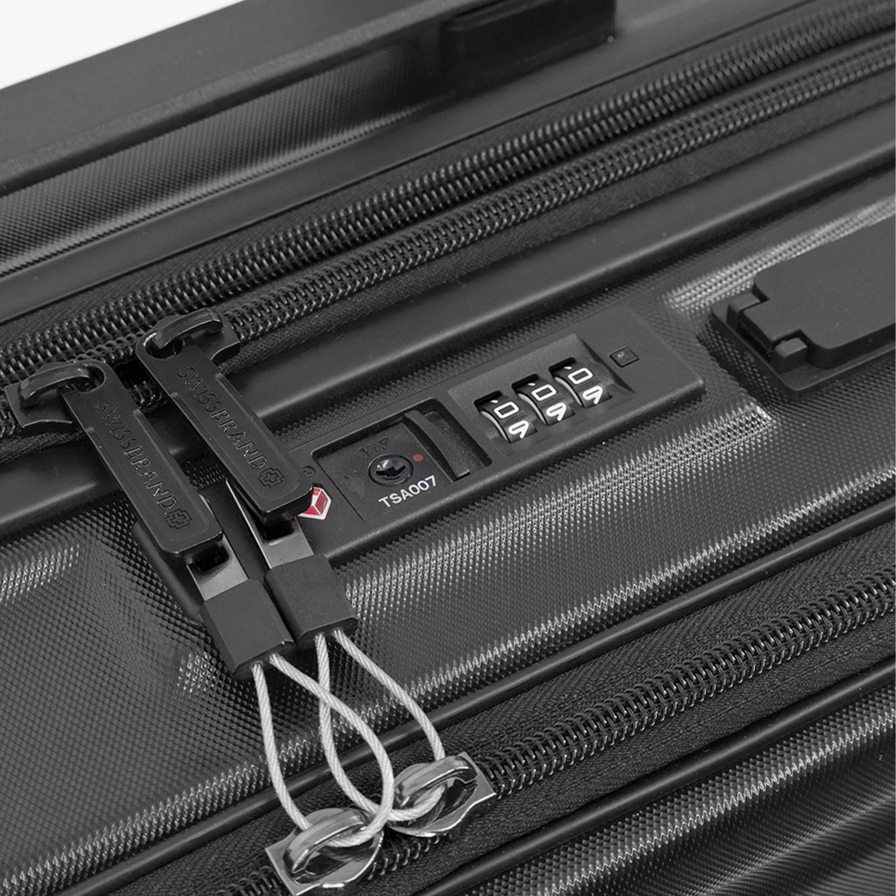 - TSA LOCK™ by TRAVEL SENTRY® - валіза оснащена спеціальним кодовим замком з функцією митного огляду TSA LOCK™. У разі крайньої необхідності більш детальної перевірки працівники митної служби мають право розкривати і оглядати багаж. Адміністрація транспортної безпеки США (TSA) спільно з компанією Travel Sentry розробила кодові замки, які можуть бути відкритими лише спеціальними ключами, за які співробітники безпеки аеропортів несуть персональну відповідальність. Відповідно, при фізичному огляді та відкритті багажу, замки та блискавки залишаться цілі, і секретний код замку також буде збережено. Повний список країн і виробників багажу, які офіційно використовують замки TSA LOCK™ можна подивитися на сайті виробника Travel Sentry. Валізи Swissbrand, відзначені логотипом Travel Sentry, оснащені замками системи TSA LOCK™ і відповідають стандартам глобальної безпеки подорожей.