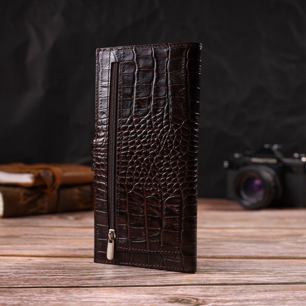 Відмінний купюрник для чоловіків з натуральної шкіри з тисненням під крокодила Canpellini 21917 коричневий