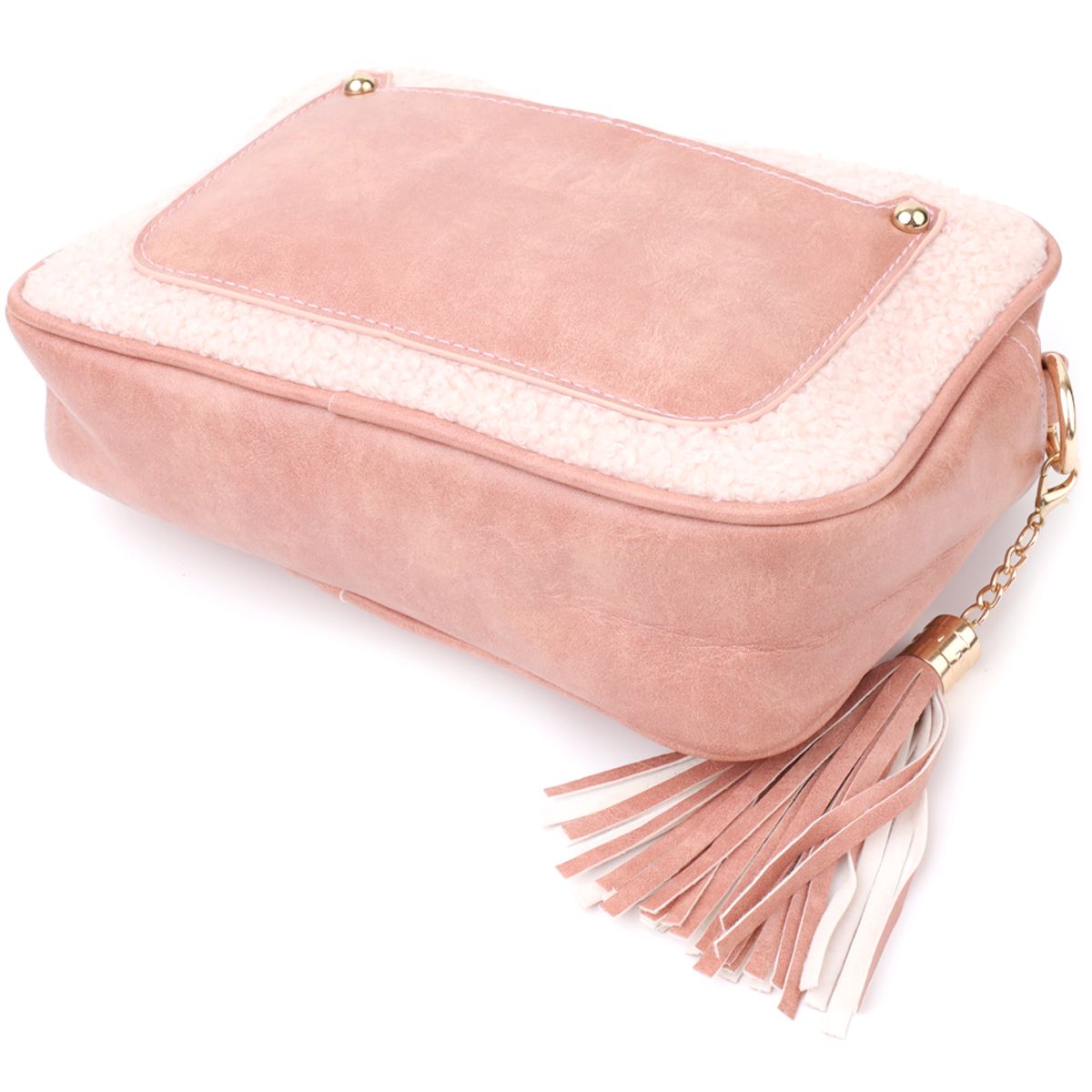 Жіноча сумка з плюшевою вставкою на лицьовій стороні з екошкіри Vintage s_15133 рожева