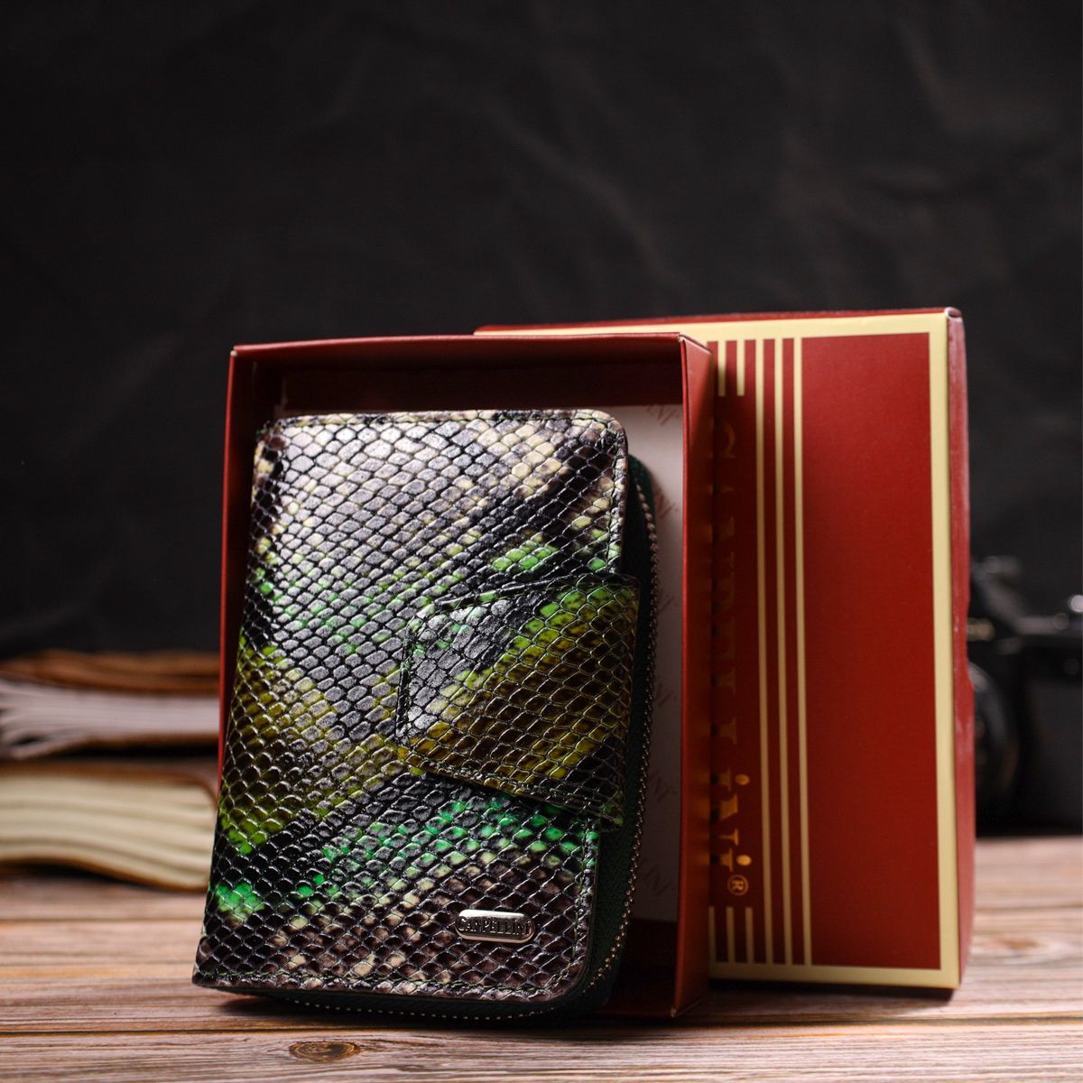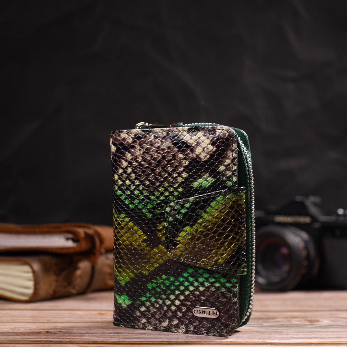 Жіноче фактурне вертикальне портмоне з монетницею на блискавці з натуральної шкіри з тисненням під змію Canpellini 21732 різнокольорове
