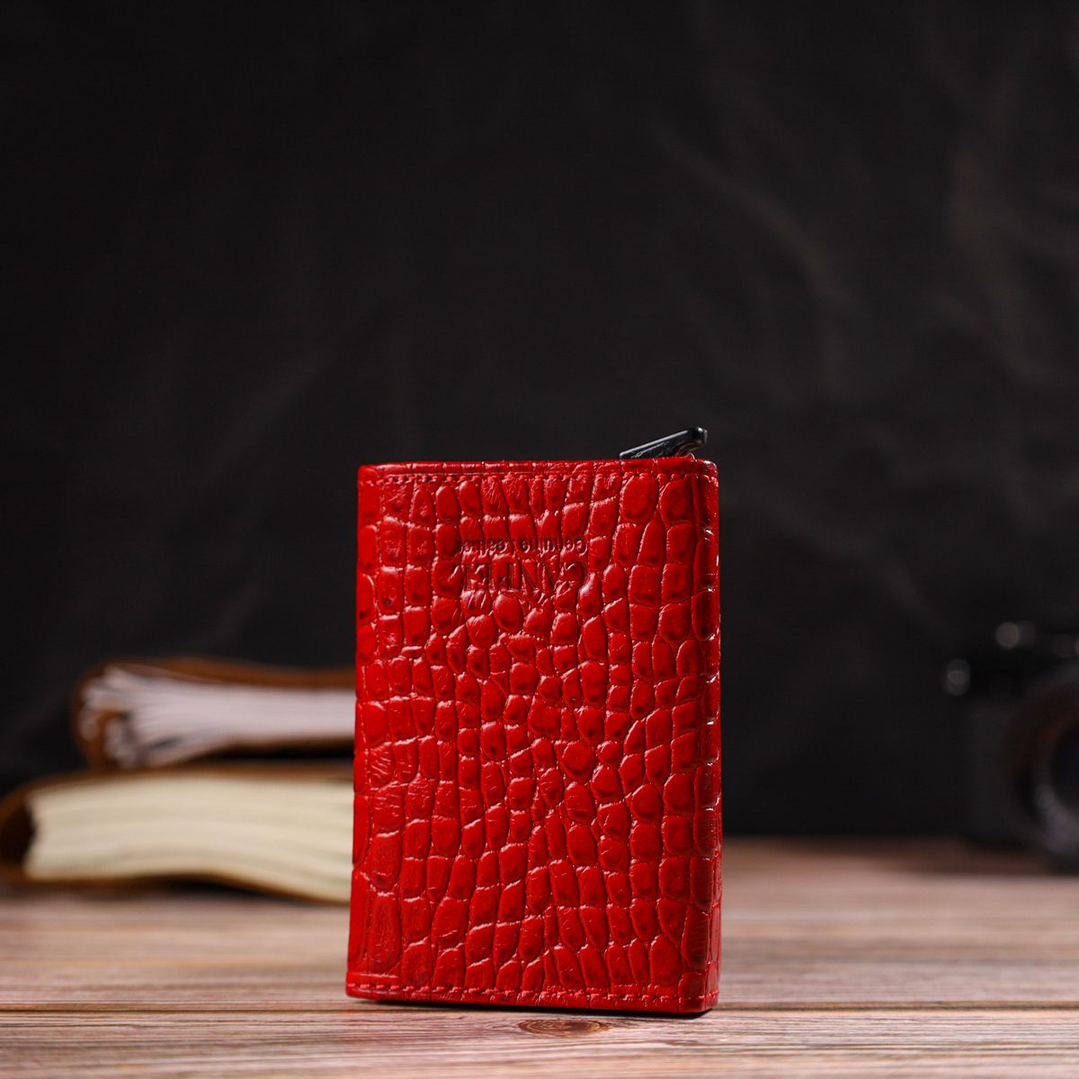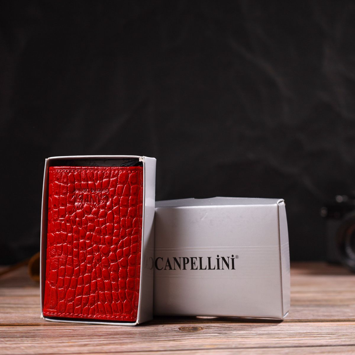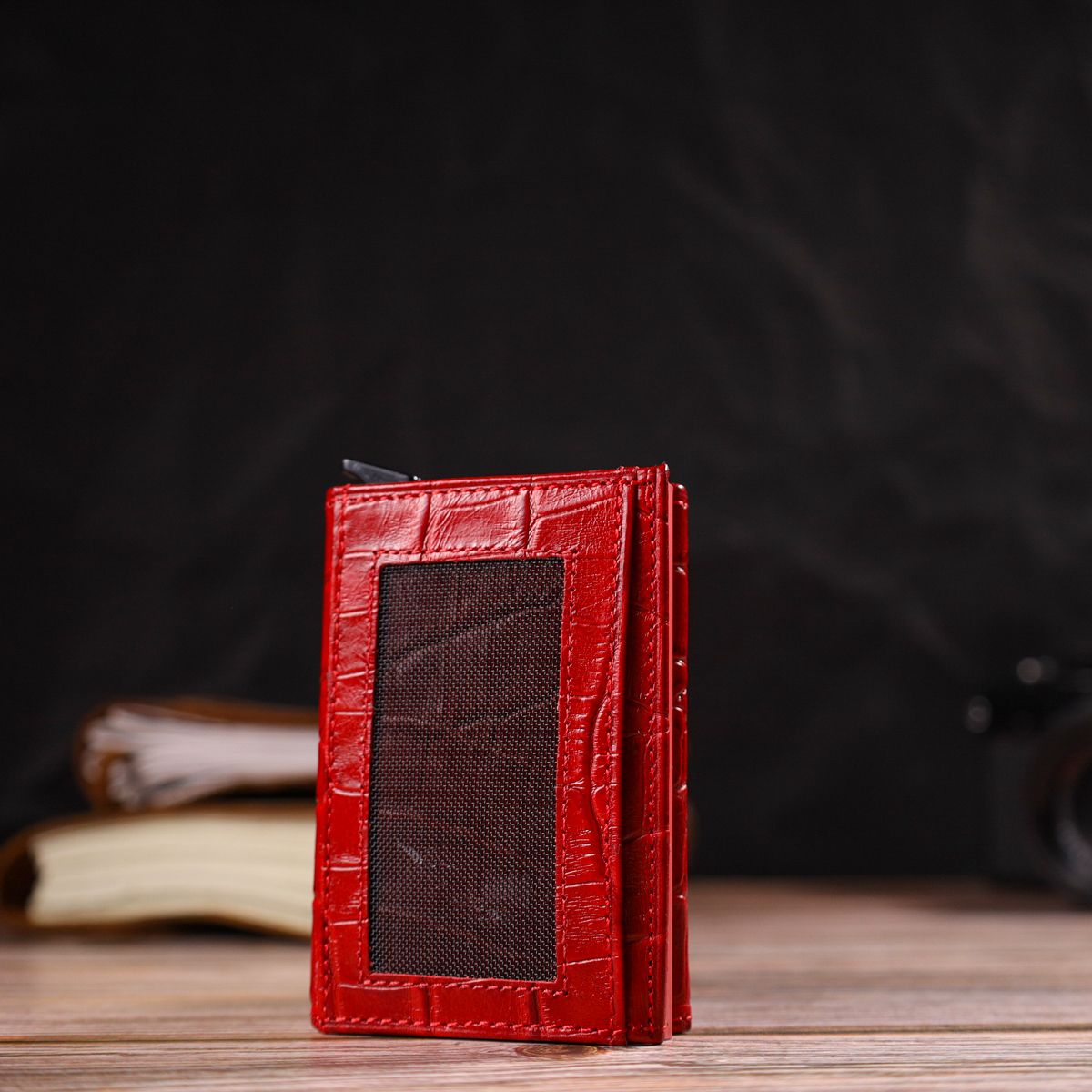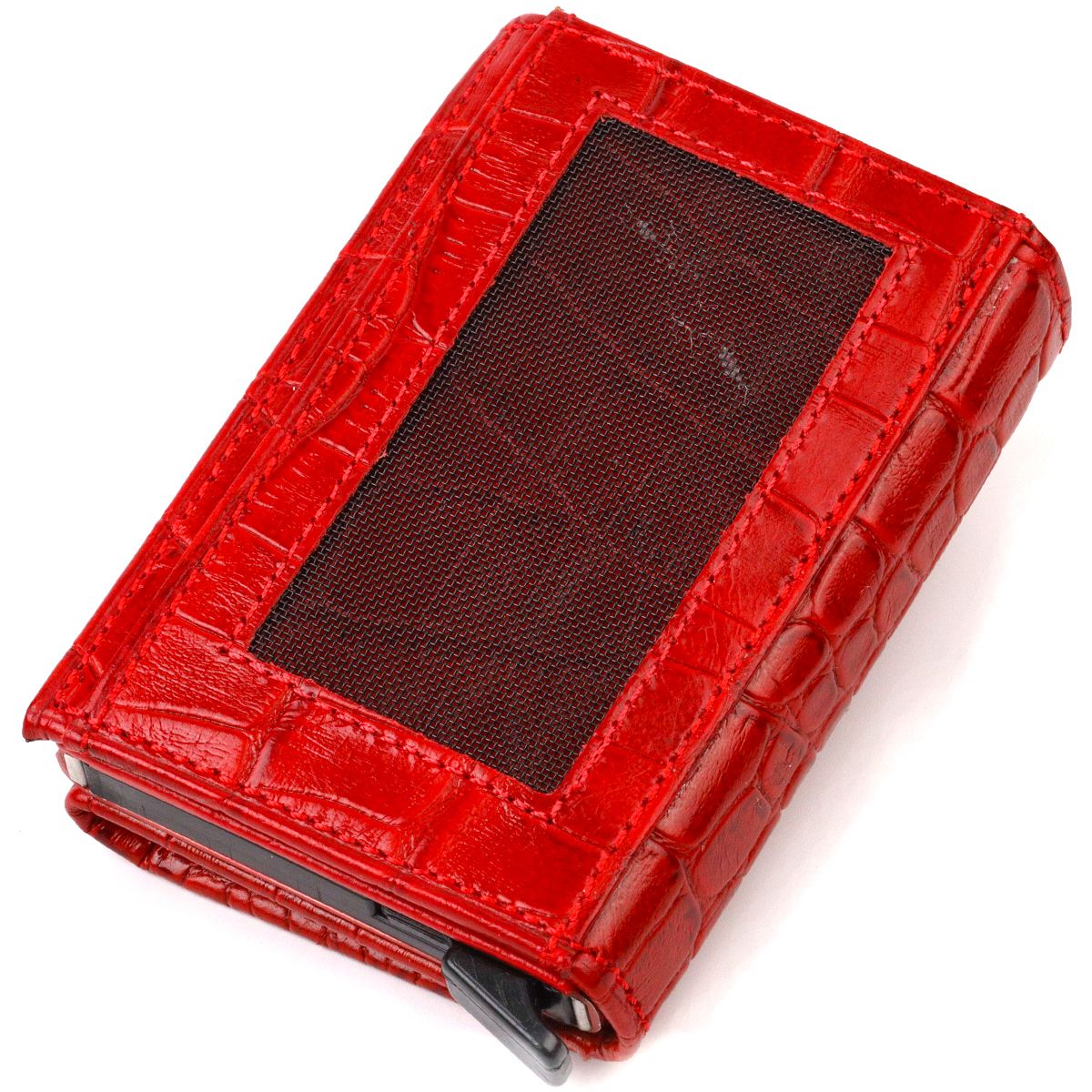 Жіночий картхолдер у три складання з автоматичним механізмом з натуральної шкіри з тисненням під крокодила Canpellini 21929 червоний
